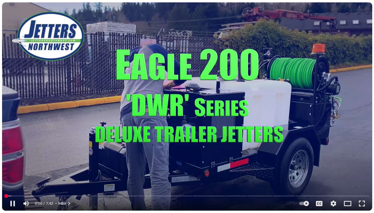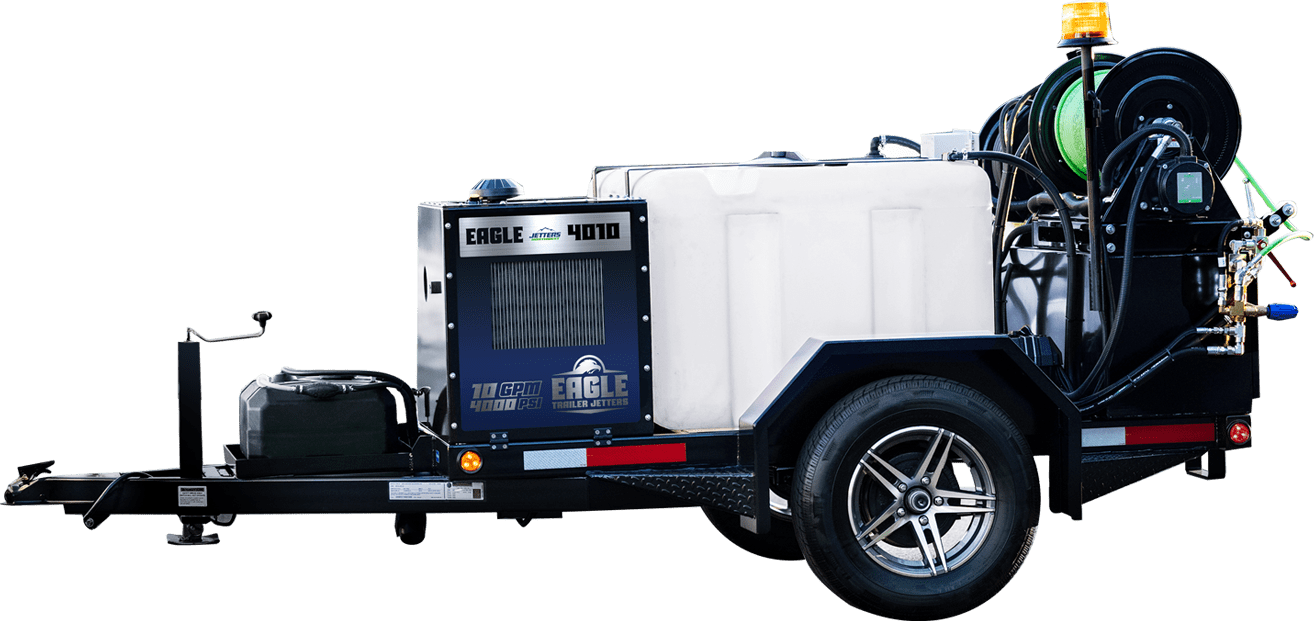 The Eagle 200 is available in 2 models: 10 GPM 4000 PSI and 12 GPM 3000 PSI. These are mid-sized trailer jetters that include a wireless remote control and beacon light. These beautifully designed jetters include many of the features you would typically find in larger jetters, enabling you to utilize a smaller trailer without sacrificing quality or performance.